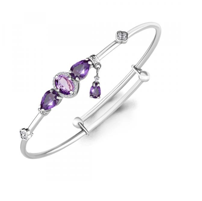 Браслет из серебра 7438604А. Вставка: 4 Аметист,25 Фианит