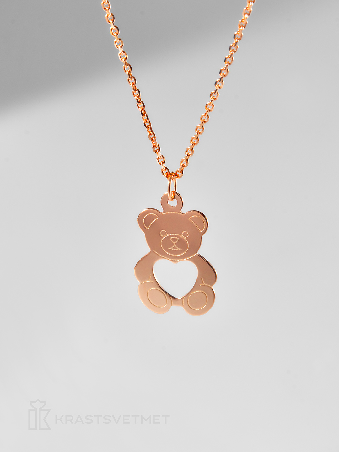 Украшение из коллекции "Любимые игрушки". Цепь плетения Кобра (0,3). Подвеска "Мишка с сердцем".
