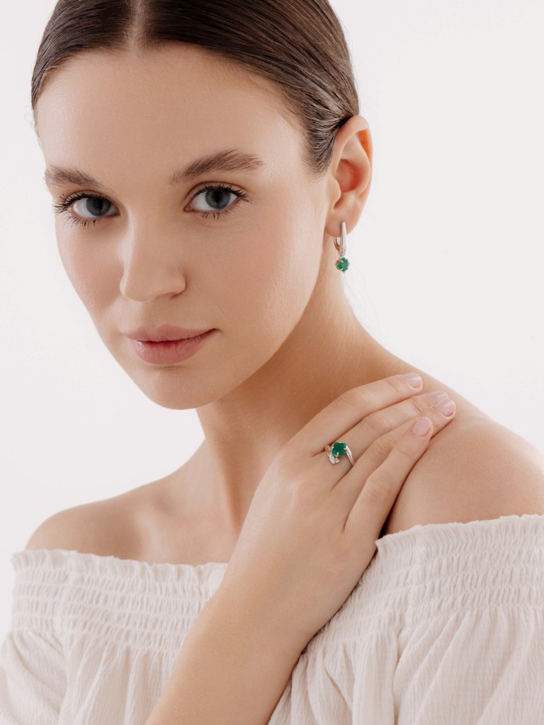 Кольцо из серебра 01-4034/БРАГ-00. Вставка: 1 Зелёный агат зеленый Квадрат 0.948 6х6 . 1 Бриллиант Круг 17 0.005 200 400 2/3А