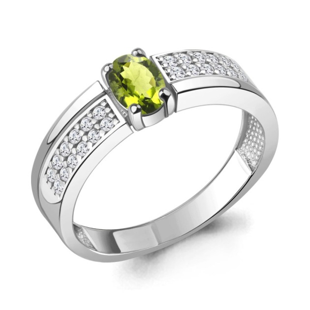 Кольцо из серебра 6980507А. Вставка: 24 Фианит 1 Хризолит 0.465 Ов 6*4