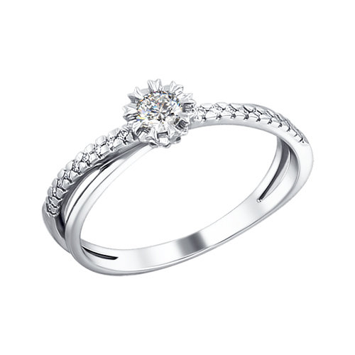 Кольцо из золота 1010664. Вставка: 1 Бриллиант Кр 57 0.121 ct 3/4А; 20 Бриллиантов Кр 57 0.081 ct 3/4А