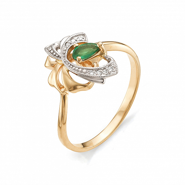 Кольцо из золота 11188-101. Вставка: 8 Бриллиант Кр 57 0.027 4/4А; 1 Изумруд нат.гр. 5*3 0.176 3/3