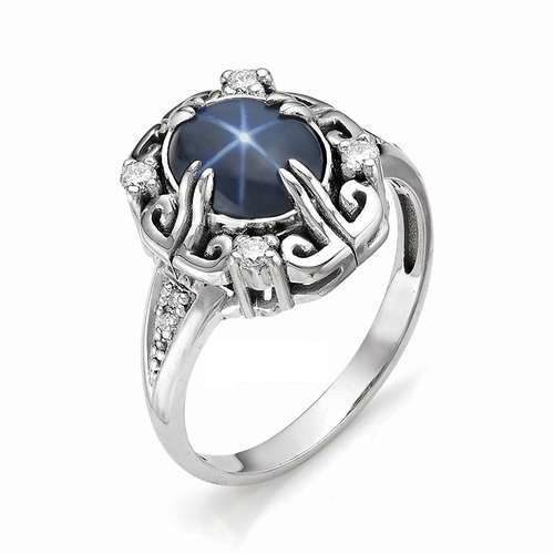 Кольцо из золота 11270-214. Вставка: 1 Сапфир 9*7 3.165 ct 2/2; 4 Бриллиант Кр 57 0.118 3/4А; 6 Бриллиант Кр 57 0.028 3/4А