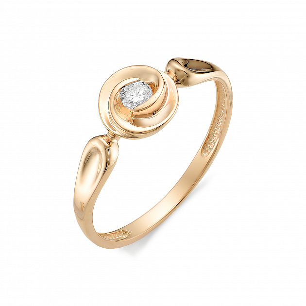Кольцо из золота 12280-100. Вставка: 1 Бриллиант Кр 57 0.066 ct 4/5А