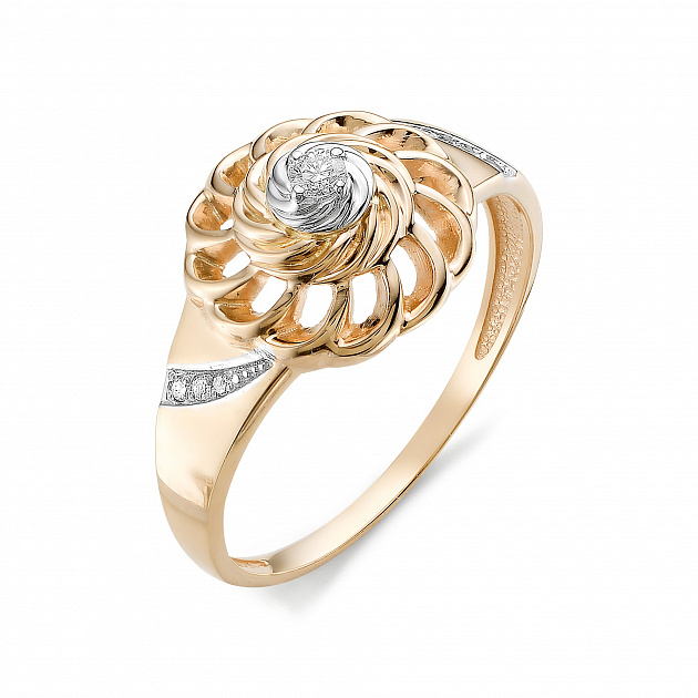 Кольцо из золота 12316-100. Вставка: 6 Бриллиант Кр 57 0.016 ct 2/3А;1 Бриллиант Кр 57 0.037 3/7А