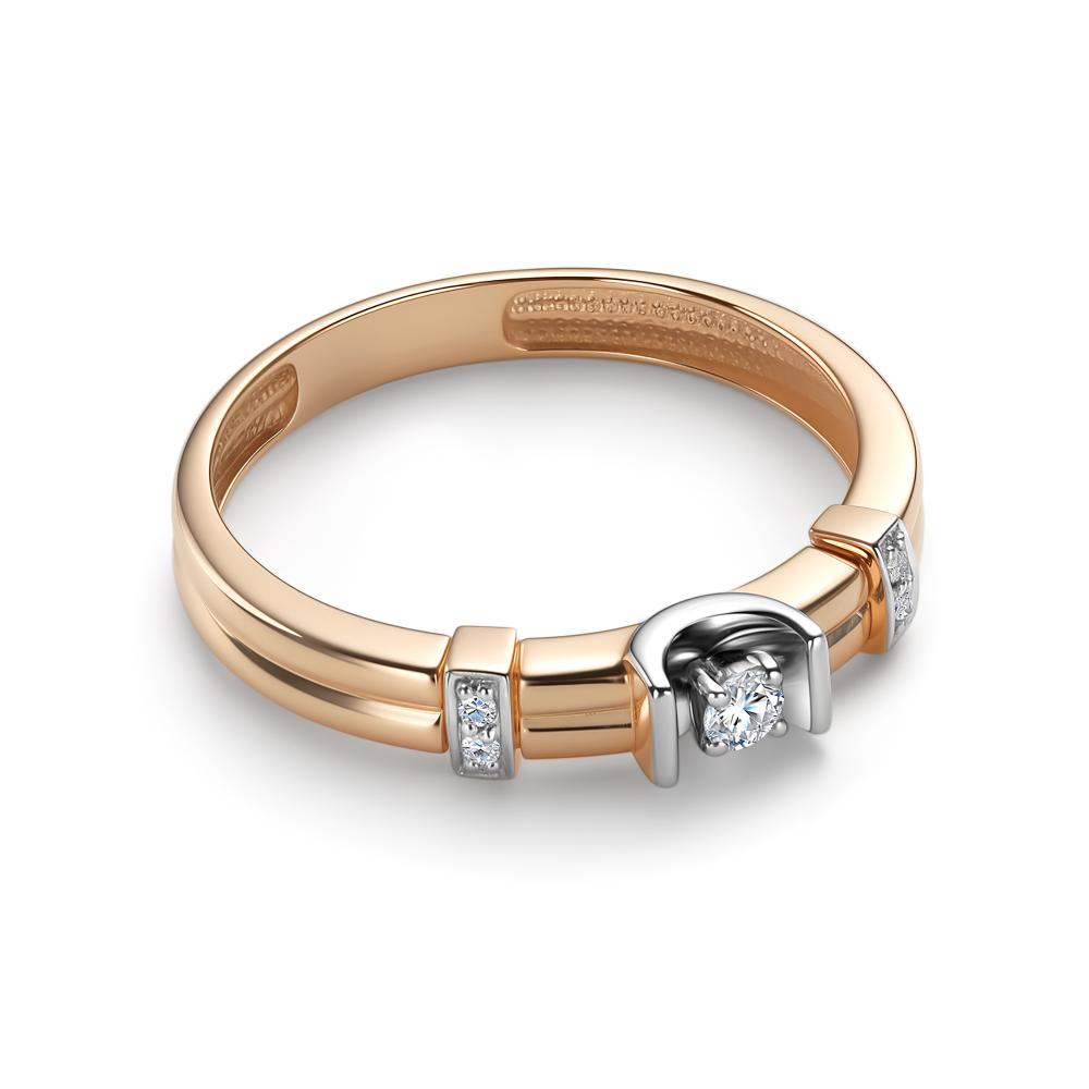 Кольцо из золота 16501-100. Вставка: 1 Бриллиант Кр 57 0.062 ct 4/6А; 4 Бриллианта Кр 57 0.016 ct 4/6А