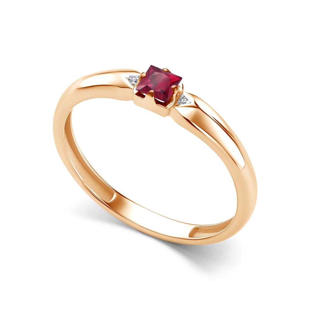 Кольцо из золота 16695-103. Вставка: 1 Рубин Квадрат 3.0*3.0 0.205 ct 2/2; 2 Бриллианта Кр 57 0.005 ct 4/5А