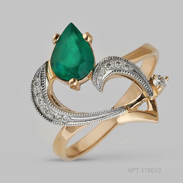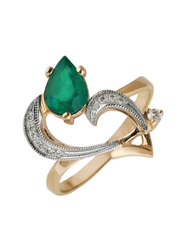 Кольцо из золота 178013. Вставка: 1 изумруд 0,847 8*6 3/2; 1 Бриллиант 0.028 3/4А; 10 Бриллиант 0.057 3/4А