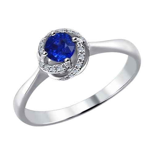 Кольцо из золота 2011040. Вставка: 32 Бриллиант Кр 17 0.128 ct 2/3А; 1 Сапфир Круг 0.250 4,5 2/2