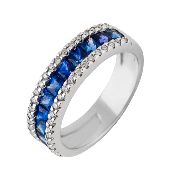 Кольцо из золота 2кс-1. Вставка: 11 Сапфир 1,66 ct 2/2; 40 Бриллиант Кр 57 0.20 3/4