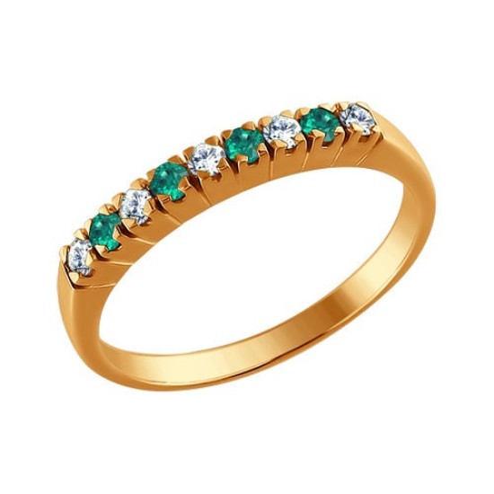 Кольцо из золота 3010024. Вставка: 4 Изумруд нат. Кр 2,00 0.112 ct 2/2; 5 Бриллиант Кр 57 0.164 2/5 а