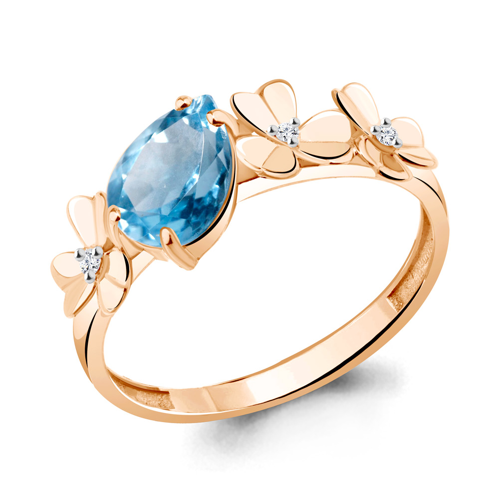 Кольцо из золота 6956005. Вставка: 3 Фианит 1 Топаз Свисс Блю 1.270 Гр 8*6