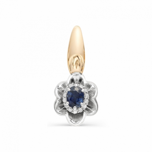 Подвеска из золота 3664-102. Вставка: 14 Бриллиант Кр 17 0.052 ct 2/3А; 1 Сапфир 0.235 4*3 2/2