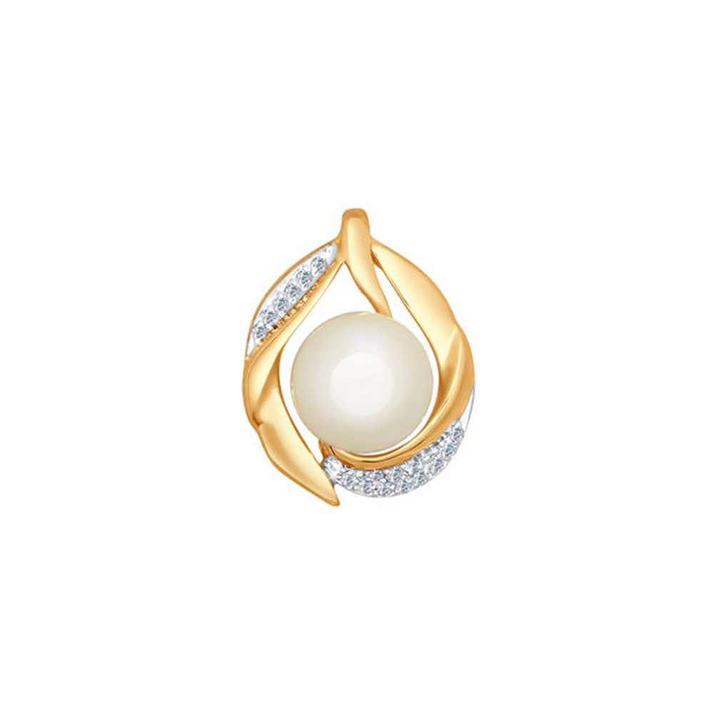 Подвеска из золота 793017. Вставка: 1 Жемчуг синт. прв Круг Кабошон 9 ; 18 Фианит Круг 1