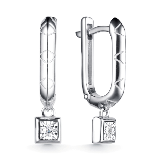 Серьги из серебра 02-4135/000Б-00. Вставка: 2 Бриллиант Круг 17 0.008 200 400 2/3А