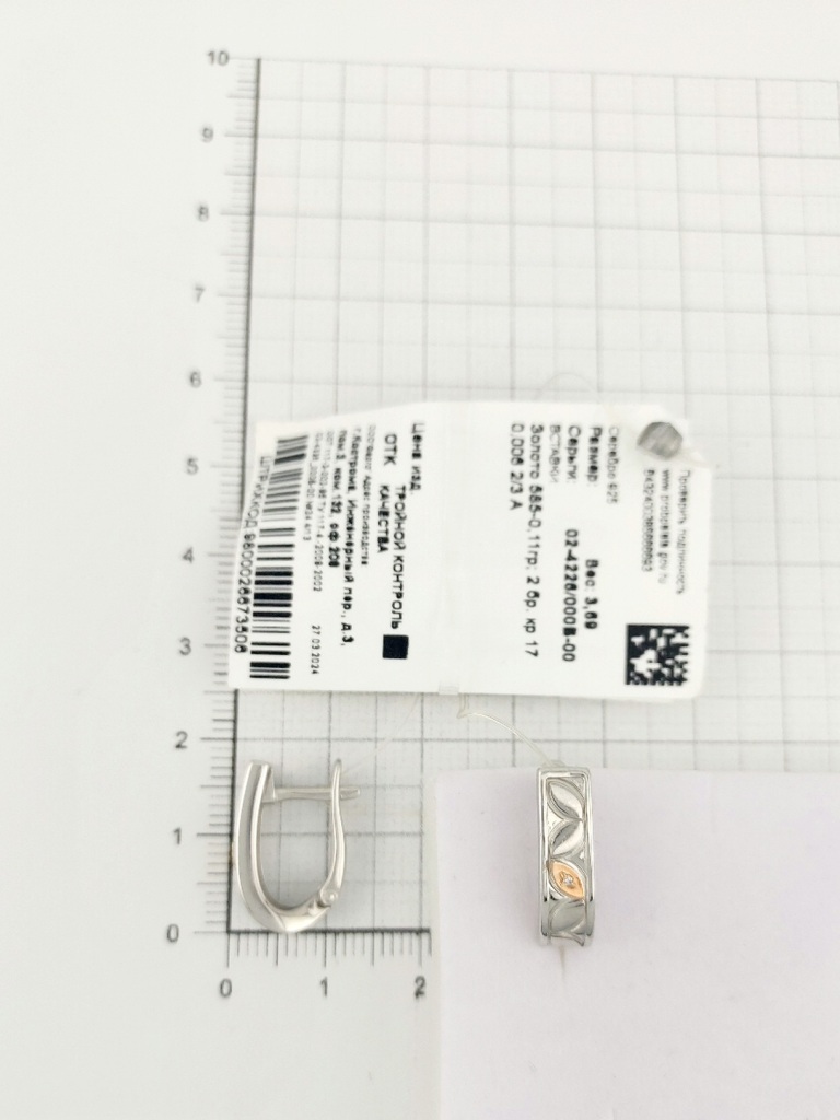 Серьги из серебра 02-4226/000Б-00. Вставка: 1 Золото 585 0.500.2 Бриллиант Круг 17 0.007 200 400 2/3А