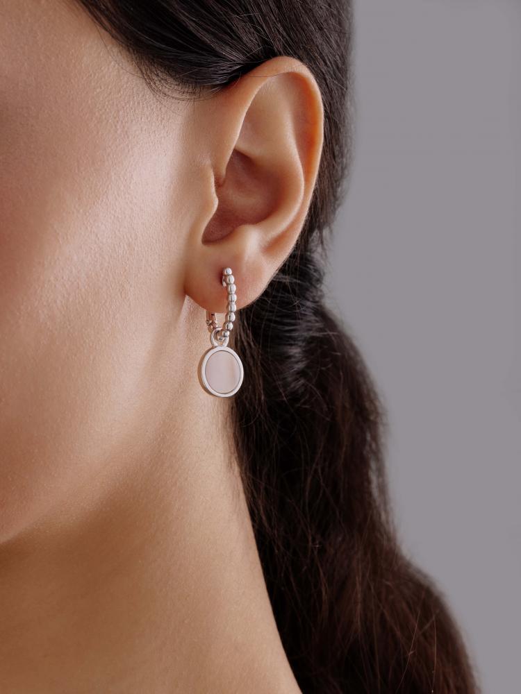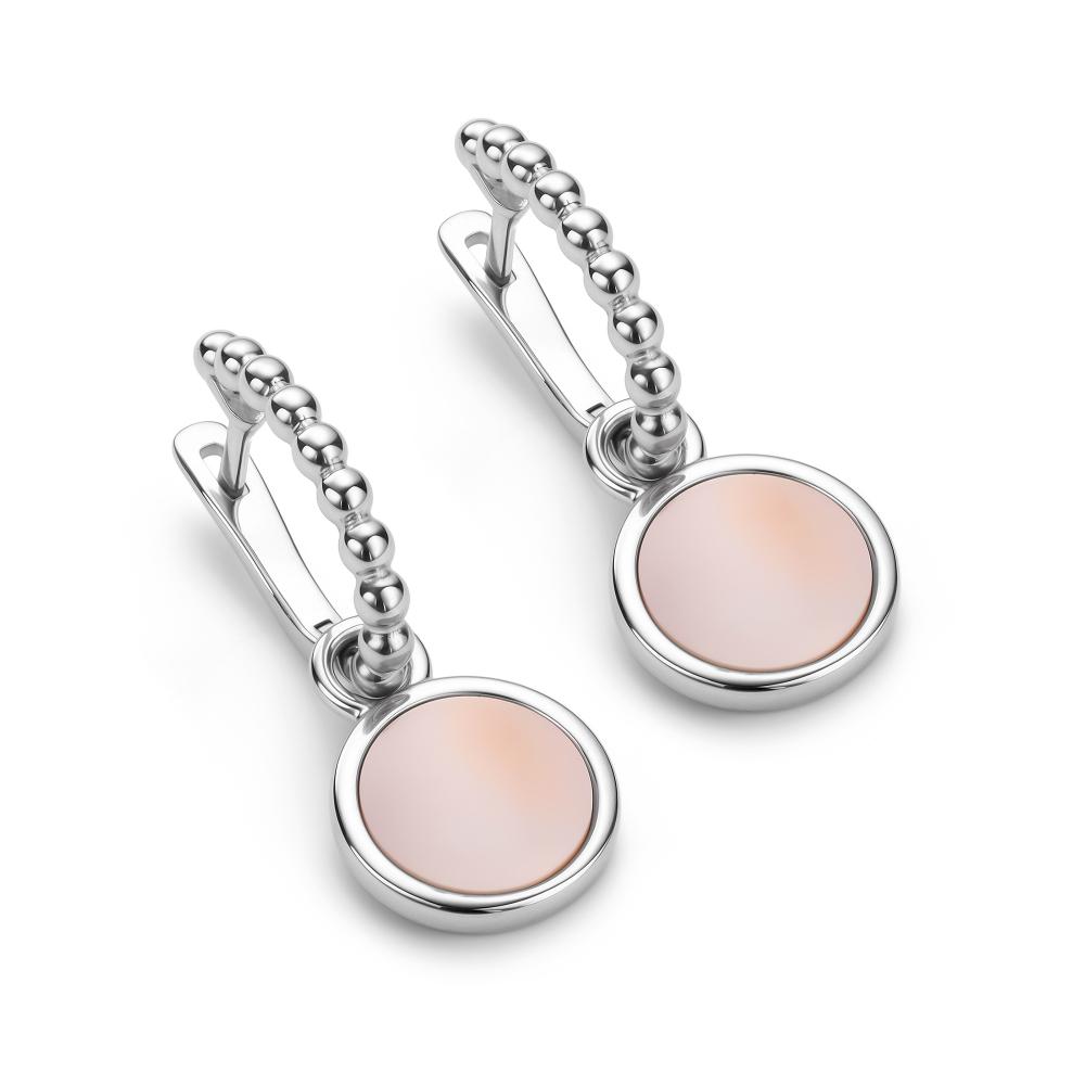 Серьги из серебра 02-4257/00ПР-00. Вставка: 2 Перламутр розовый Диск 3.26 10.0