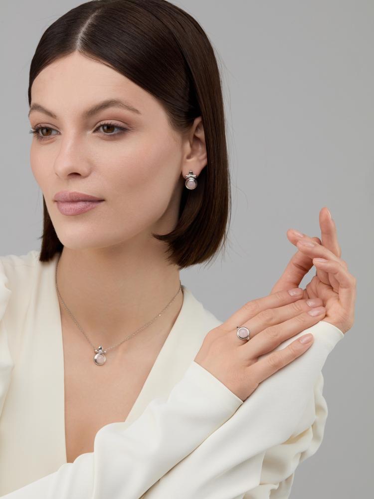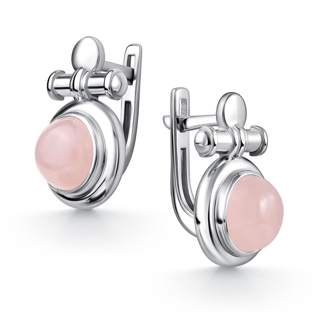 Серьги из серебра 02-4412/00РК-00. Вставка: 2 Розовый кварц Круг Кабошон 4.488 8.0