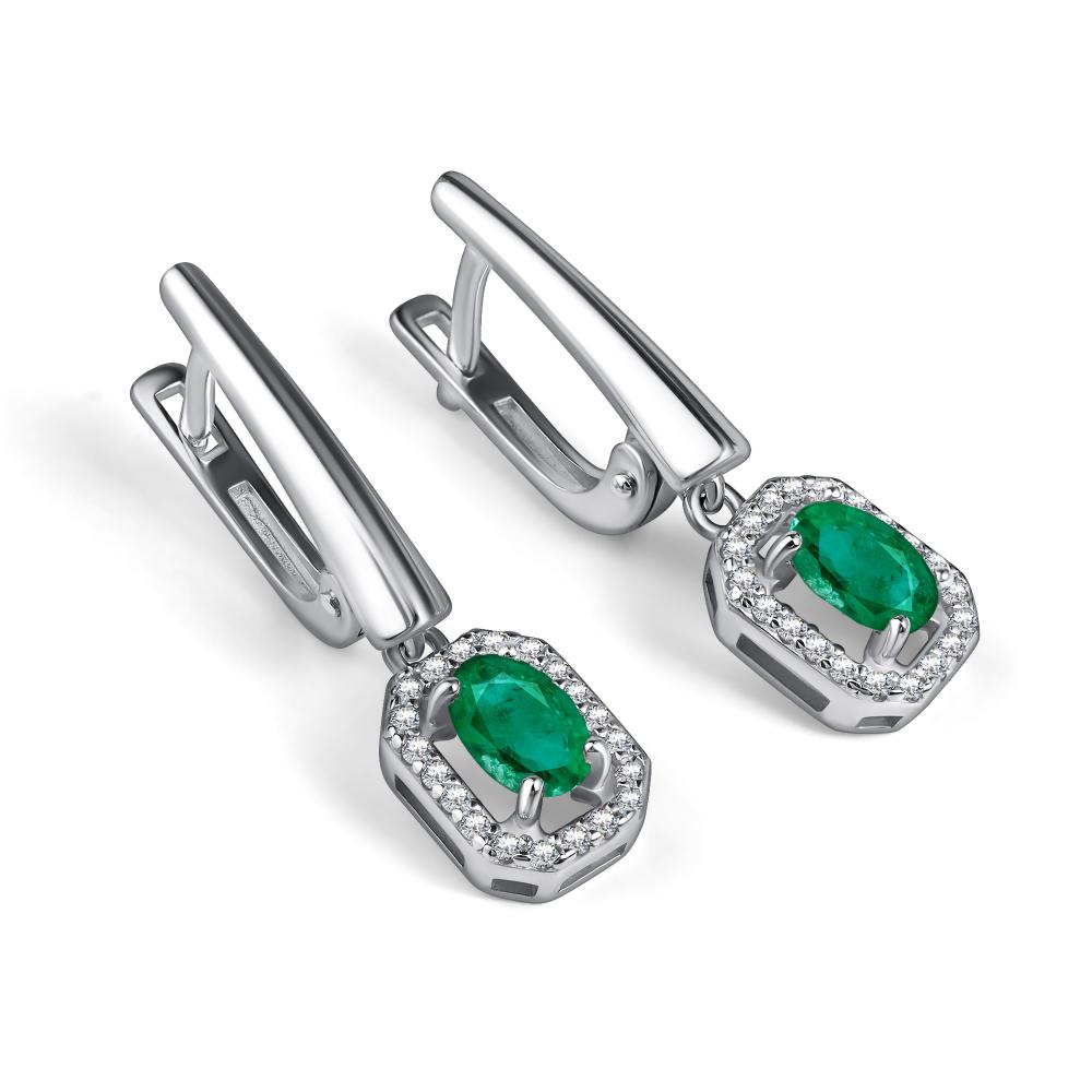 Серьги из серебра 02-4564/000И-00. Вставка: 2 Изумруд зеленый Овал 0.884 6х4 3/3; 40 Фианит Круг 0.360 1.0