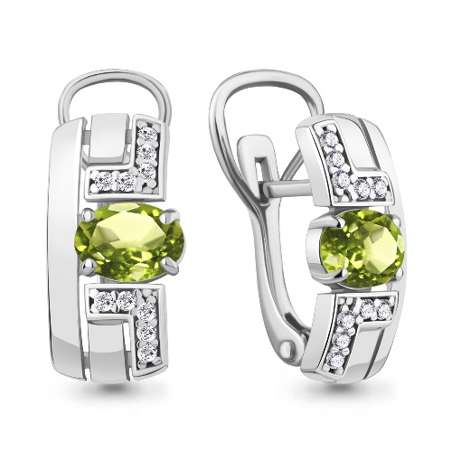 Серьги из серебра 4794907А. Вставка: 20 Фианит 2 Хризолит 1.663 Ов 7*5