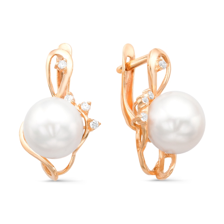Серьги из золота 22407A1. Вставка: 2 Жемчуг синт, недраг, Круг 2,465 ,8 Фиан Круг 1,25 0,026