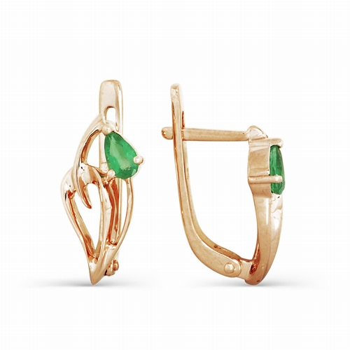Серьги из золота 2954-101. Вставка: 2 Изумруд груша 0.338 5*3 3/3