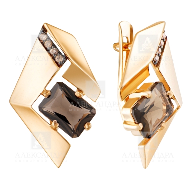 Серьги из золота кл4073а-4-01. Вставка: 8 Фианит ; 2 Раух-топаз баг 8*6;